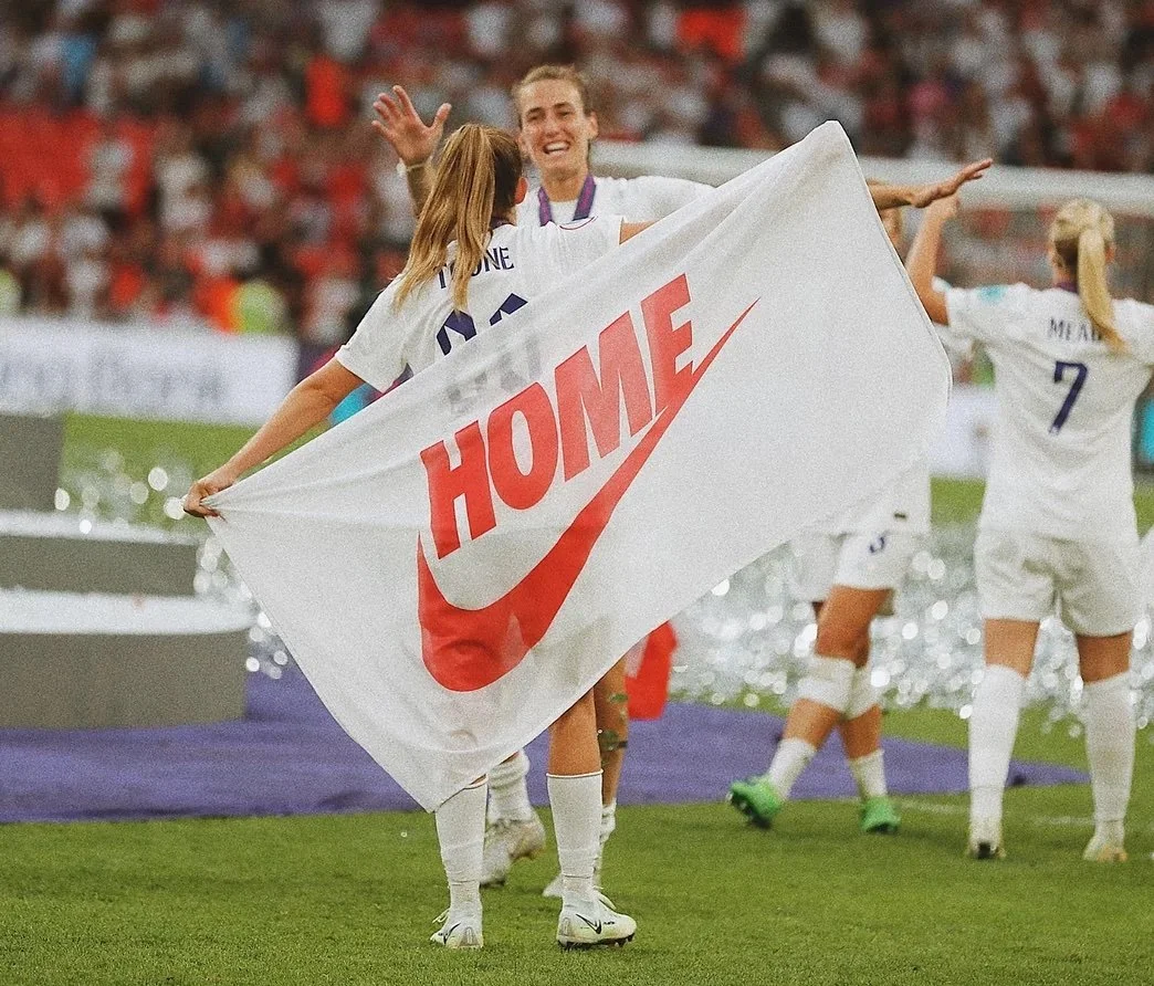 We combined this iconic word with one of the most iconic logos in the world - the Nike Swoosh. In a red and white England colourway, we created a visual asset that was both familiar and novel; iconic and shareable. A visual that became the defining visual to celebrate the achievement of the Lionesses. An unmissable statement. A logo that raised the profile of the women’s game. A word meant for the men, that now belongs to the women.